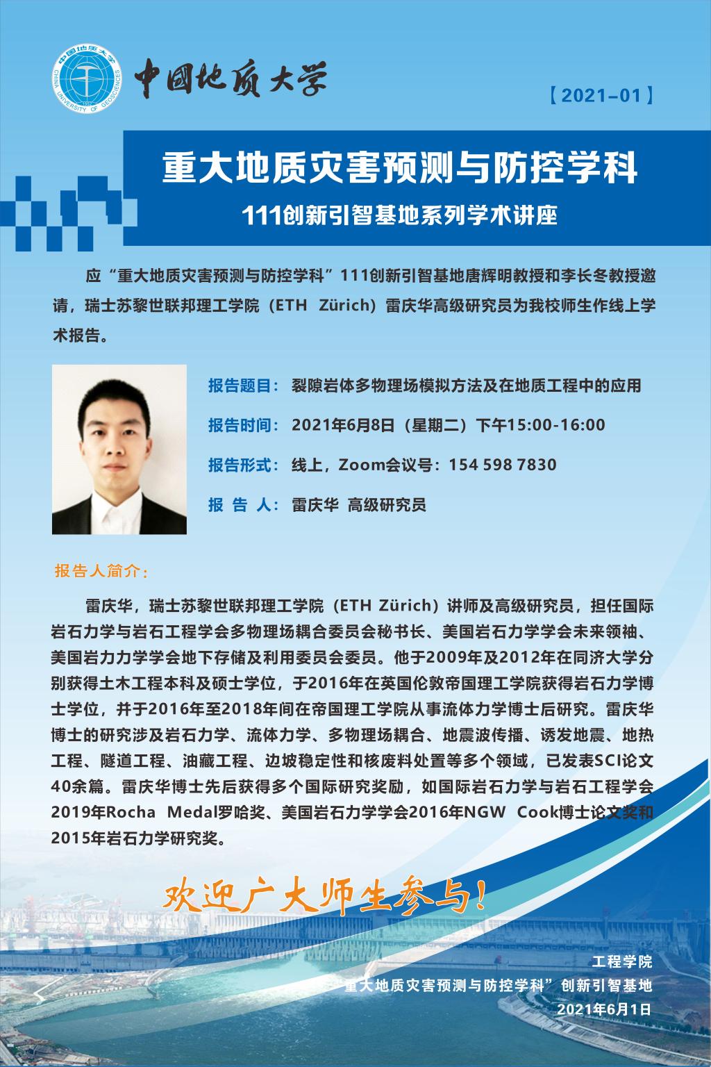 2021年度“重大地质灾害预测与防控学科”111创新引智基地系列学术讲座(1)