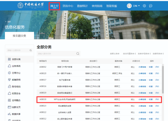 1、登录学校网站(https://www.cug.edu.cn/)或者学院网站(/)点击“网上厅”