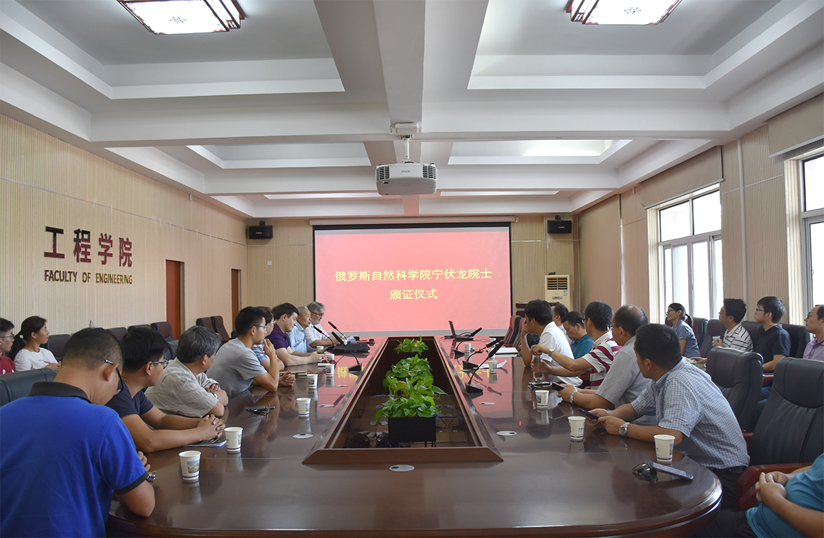 jdb电子中国官方网站党委书记陈飞主持本次仪式。首先,院长焦玉勇教授对宁伏龙教授的主要学术成就做了简单介绍。之后,契霍特金教授向大家介绍了俄罗斯自然科学院基本情况以及外籍院士的遴选过程,并代表俄罗斯自然科学院为宁伏龙教授颁发院士荣誉证明、院士证和徽章。随后,宁伏龙教授发表荣获俄罗斯外籍院士感言,表示今后会更加致力于本职工作,积极推动与俄罗斯等国家高校、研究院所的国际合作,为学校“双一流”建设作出更多贡献。最后,王林清副书记发表讲话,对宁伏龙教授获此荣誉表示祝贺,并对宁伏龙教授及jdb电子中国官方网站今后的工作提出了更高的要求。