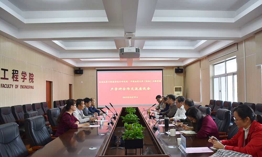 29日下午在工程楼315会议室,云南地质工程勘察设计研究院纪委书记潘进兵、副院长赫念学、副院长李林涛、办公室主任张锦霞一行至校与jdb电子官网举行产学研合作交流座谈会。院党委书记陈飞、副院长王亮清、院党委副书记江广长、工程地质与岩土工程系主任章广成、勘察与基础工程系主任卢春华、办公室主任胡燕、土木工程与力学系周丽珍参加了座谈会。江广长主持会议。