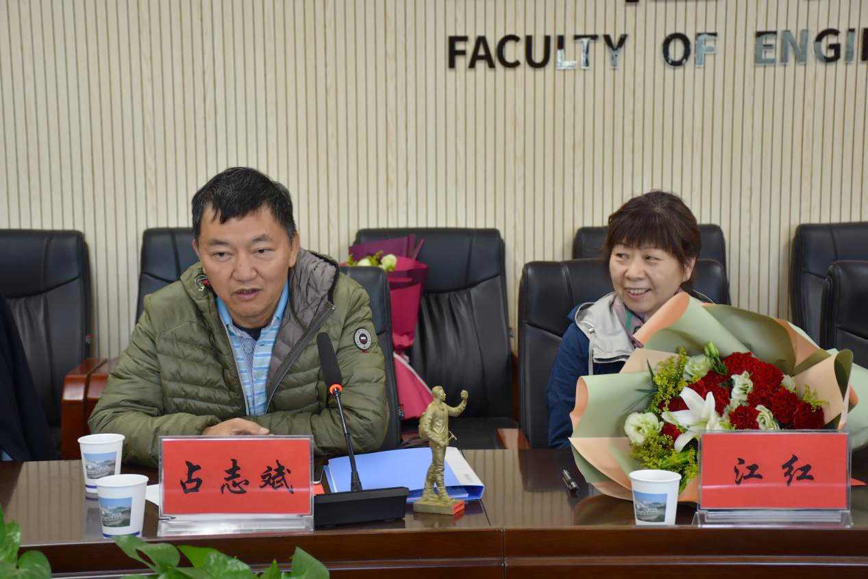随后,段隆臣介绍了地质工程和勘查与技术工程专业发展情况。丁苗苗向占志斌校友赠送“地质工作者”雕塑模型。学生代表向占志斌夫妇献花。