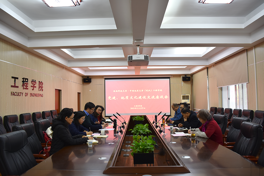 (通讯员:杨冠青)2019年11月25日上午,西南科技大学环境与资源学院(以下简称“环资学院”)副书记陈莉等一行5人来jdb电子官网进行党建、地质文化建设交流座谈,学院党委副书记江广长,副院长窦斌,工程地质与岩土工程系党支部书记贾洪彪,党委委员组织人事秘书杨冠青参加了座谈。会议由窦斌主持。