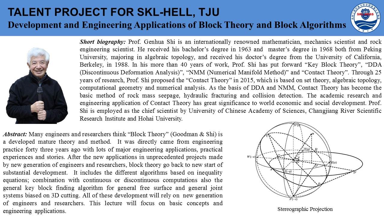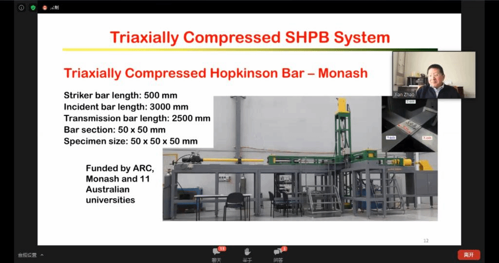 2020年7月18日上午,由国际岩石力学与岩石工程学会非连续变形分析专委会和岩石动力学专委会联合发起,jdb电子中国官方网站(武汉)、天津大学和东南大学联合承办的第一期国际岩石力学云论坛成功举行。本次论坛邀请了关键块体和数值流形理论创建者石根华教授、澳大利亚莫纳什大学赵坚教授、澳大利亚悉尼大学沈鲁明教授分别作了题为《Development and engineering applications of block theory and block algorithms》、《On the development of true triaxial SHBP system》、《A coarse-grained approach for modelling solid-liquid-gas interactions at microscale》的精彩讲座,来自莫纳什大学、悉尼大学、新加坡南洋理工大学、日本京都大学、jdb电子中国官方网站(武汉)、天津大学、东南大学、中山大学、大连理工大学、山东大学等全球各高校的1000余名专家学者参与了此次云论坛。