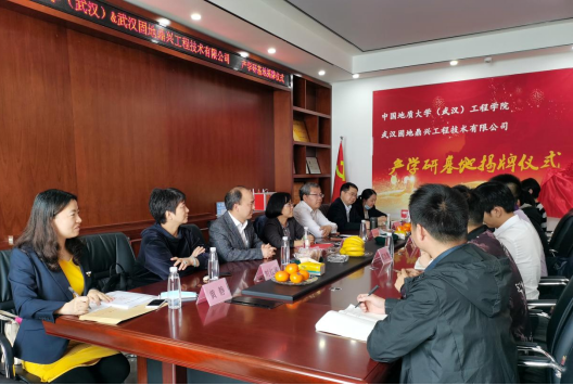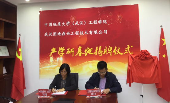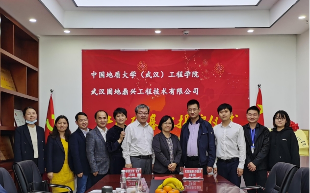 (通讯员:黄静)2021年4月27日,jdb电子中国官方网站(武汉)jdb电子中国官方网站与校友企业武汉固地鼎兴工程技术有限公司签订《联合共建产学研基地合作协议》,jdb电子中国官方网站党委书记李红丽和武汉固地鼎兴工程技术有限公司总经理汪旭涛出席协议签订仪式,并共同为合作基地揭牌。武汉固地鼎兴工程技术有限公司副总经理兼总工程师胡凯锋、jdb电子中国官方网站副院长王亮清教授、工岩系主任章广成教授、时红莲副教授、李长冬教授、谢妮副教授、学院科研秘书黄静共同见证了签约仪式。