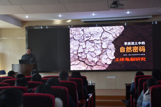 (通讯员:张海宽 黄静 摄影:王灿 黄静)2021年1月8日下午2点半,南京大学唐朝生教授作客工程文化论坛,在工程楼418报告厅为母校师生作了题为“寻找泥土中的自然密码:土体龟裂研究”的学术报告。jdb电子中国官方网站院长焦玉勇教授、副院长王亮清教授、窦斌教授、党委副书记江广长老师、段隆臣教授、李长冬教授以及jdb电子中国官方网站、三峡中心、《地质科技通报》编辑部等近200名师生代表参加了此次学术报告会。王亮清教授主持了此次学术报告会。