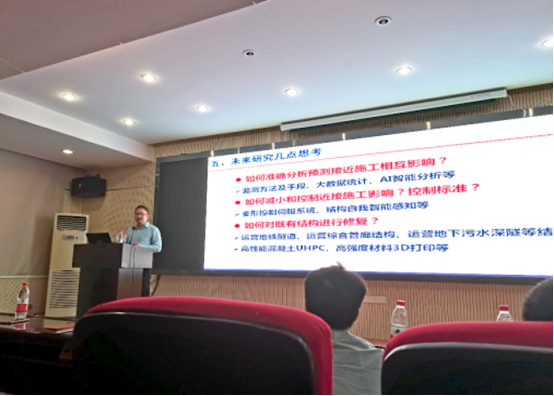 报告结束后,到场师生就城市轨道交通工程近接施工工程等问题与李忠超总工程师展开了广泛交流。李忠超总工程师就师生感兴趣和疑惑的问题与大家进行了深入探讨。与会师生均表示收获颇丰。最后,吴文兵教授对报告会进行了总结发言,感谢李忠超总工程师为学院师生带来了一场资料详实、图文并茂、深入浅出的高水平报告,并希望与会师生深入学习与思考。
