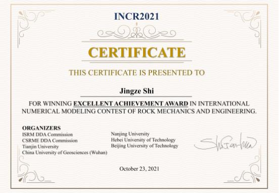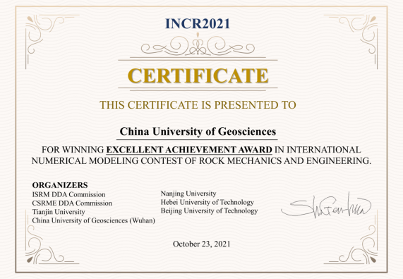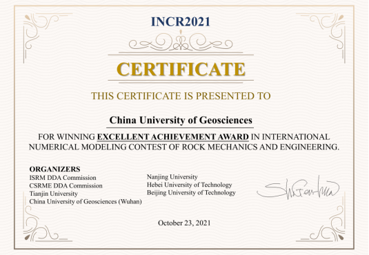 (通讯员 张美霞)近日,在第一届国际岩石力学与工程数值仿真大赛中,jdb电子官网学子取得一等奖、杰出贡献奖的好成绩,学校荣获卓越成就奖。