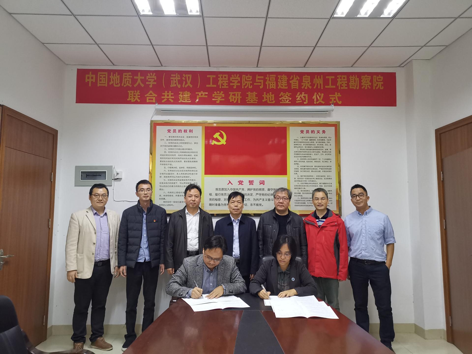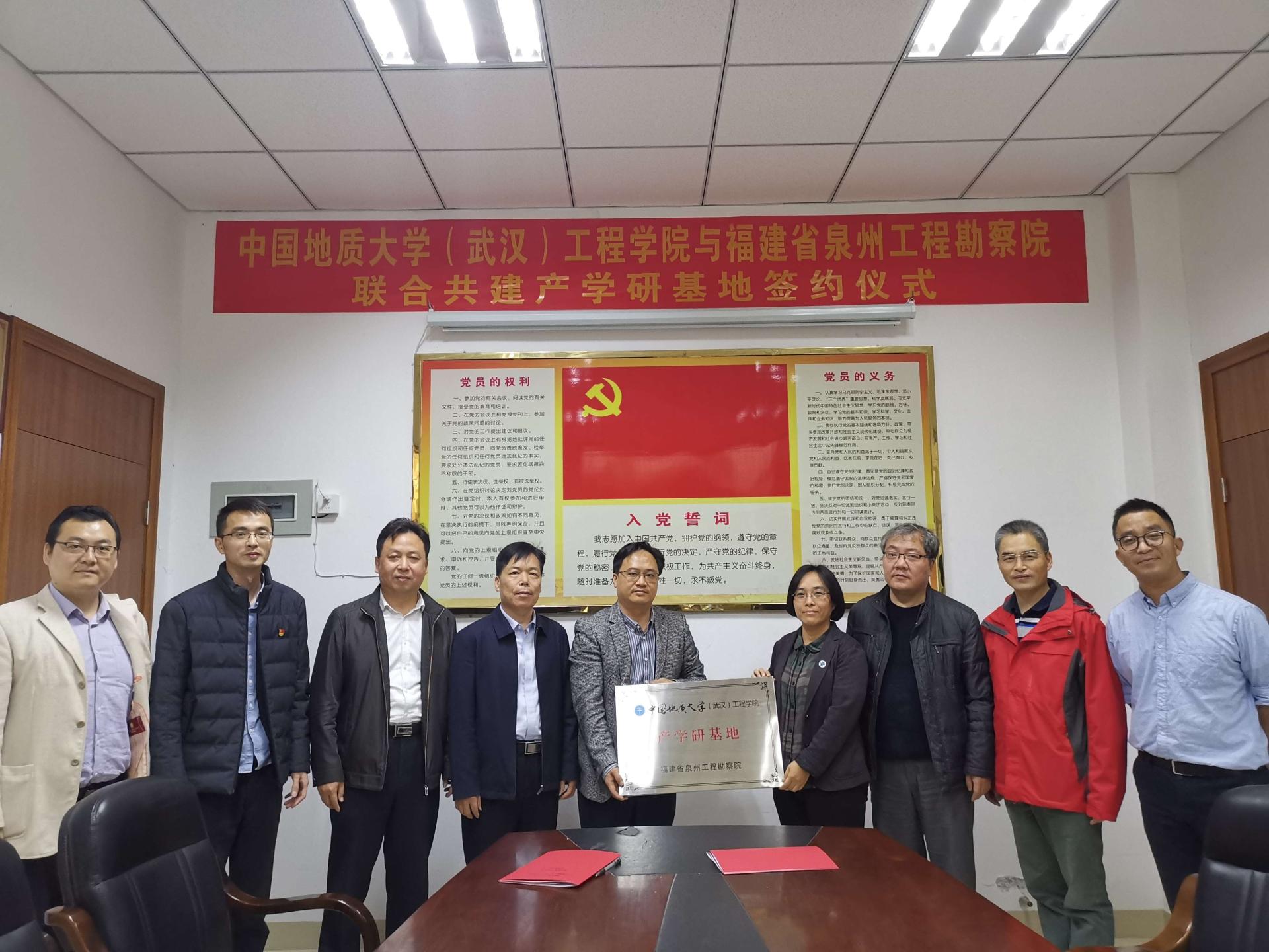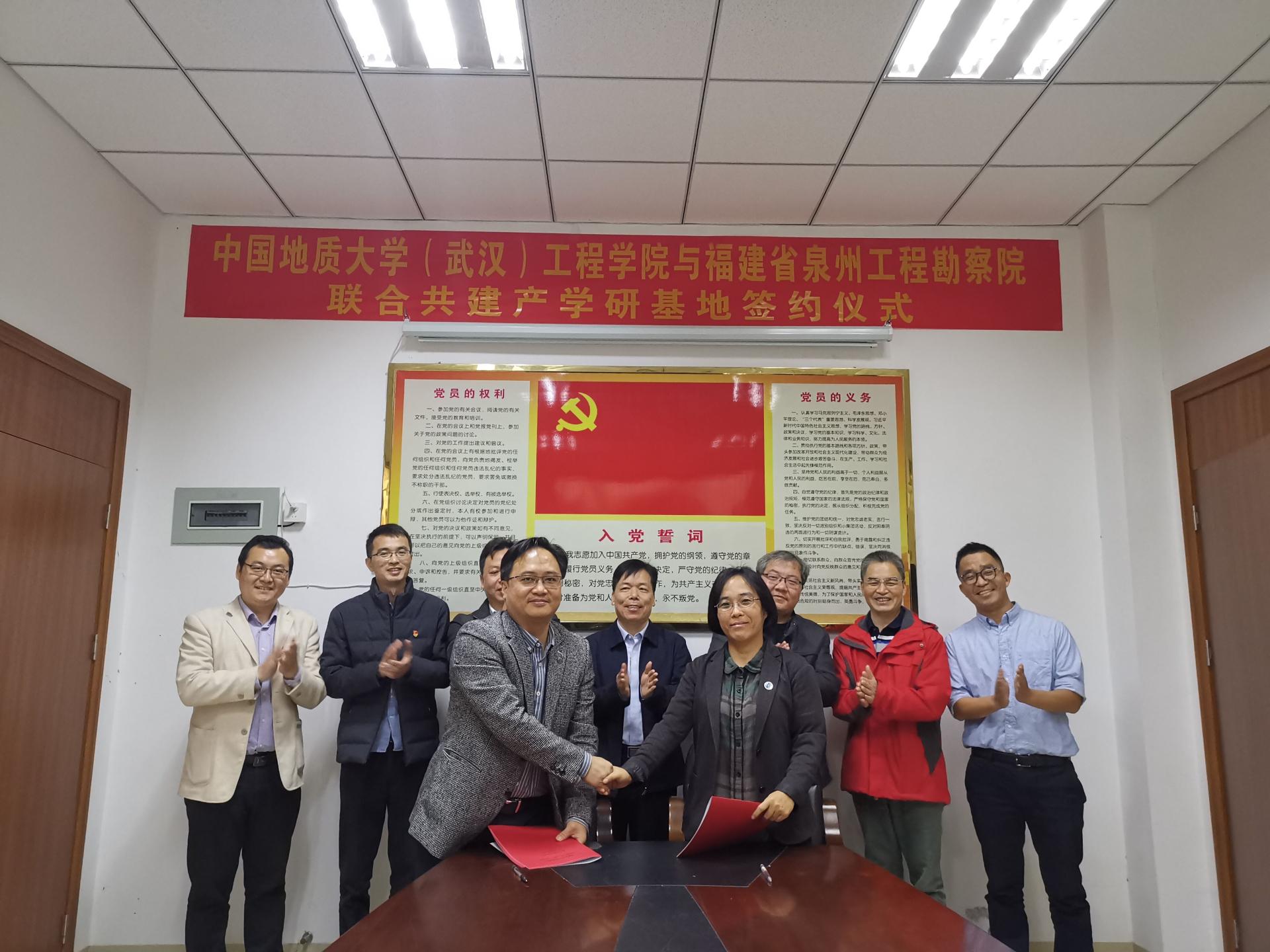 (通讯员:任兴伟)为进一步提升院科研创新实力,培养储备高素质专业化技术人才,经过前期接洽,12月17日,jdb电子中国官方网站(武汉)jdb电子中国官方网站与福建省泉州工程勘察院产学研合作签约仪式在泉州举行。jdb电子中国官方网站(武汉)jdb电子中国官方网站党委书记李红丽、副院长王亮清、工程地质与岩土工程系副主任简文星,福建省闽东南地质大队队长林建开、副队长陈守伟、泉州工程勘察院院长曾文杰、副院长蔡伟等领导出席签约仪式。