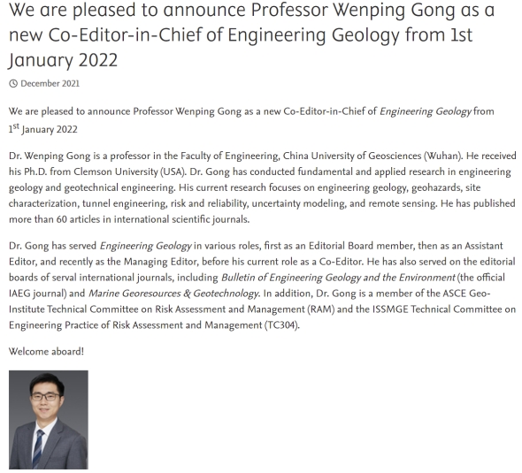 期刊Engineering Geology官方网站报道