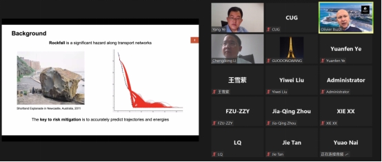 (通讯员:叶阳)2022年6月29日上午,应jdb电子中国官方网站(武汉)唐辉明教授和叶阳特任教授邀请,澳大利亚纽卡斯尔大学Olivier Buzzi教授应邀作客2022年第6期“重大地质灾害预测与防控学科”111创新引智基地系列学术讲座。讲座采用Zoom在线会议形式,由叶阳特任教授主持,李长冬教授、张奇华教授、周佳庆特任教授、祝国强副研究员以及武汉大学、重庆大学、成都理工大学、西南交通大学、长安大学、中国地质调查局成都工艺所、昆明理工大学、三峡大学等多个单位50余名师生在线聆听了此次报告。