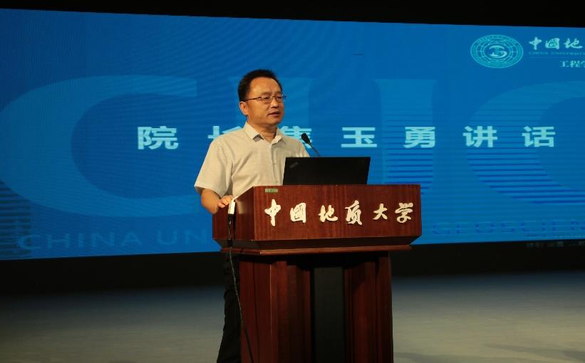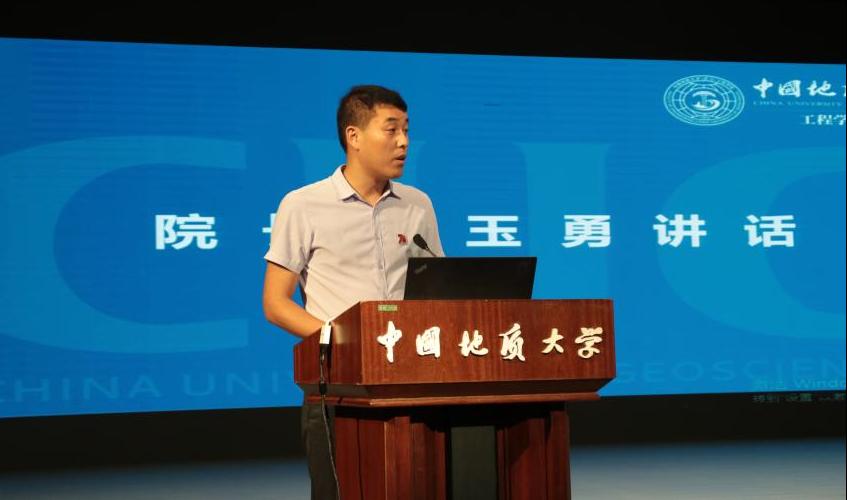jdb电子中国官方网站院长焦玉勇教授发言。他指出,jdb电子中国官方网站是培养人才的重要阵地,七十年的厚积薄发,培养无数优秀学子、书写工程内涵。他强调,当今新时代面临着伟大变革,学子们要胸怀大志、秉持真理,不断拓宽视野,提升人文素养与科研能力;要立于当下,着眼未来,为攻克地质工程领域难题不懈奋斗、贡献力量;在求学之路上,要做良善之人、栋梁之材,培养完整人格,勇担时代使命。