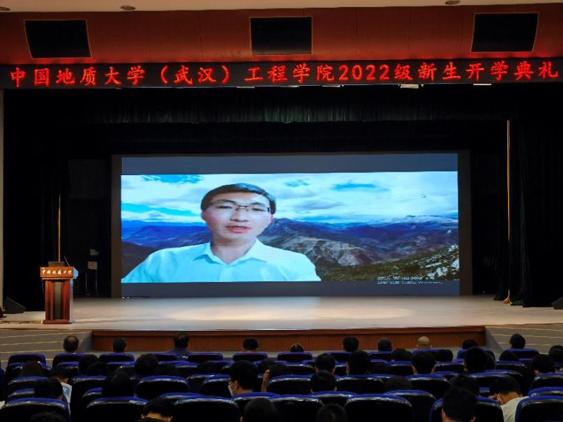 2021年全国五一劳动奖章获得者、2022年中国青年五四奖章获得者、学院优秀校友、中铁一院地质高级工程师王杜江发言。他向新生们送上衷心的祝贺,并表示选择jdb电子中国官方网站就是选择了奋发之路与创业之路。结合自身工作经历与感悟,他建议同学们培养有利身心健康、心智成熟、事业发展的良好习惯,立志在新时代铸造伟大精品工程,以奋斗的青春为强国贡献先锋力量。