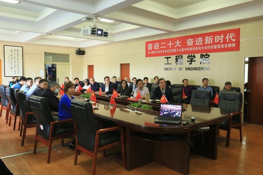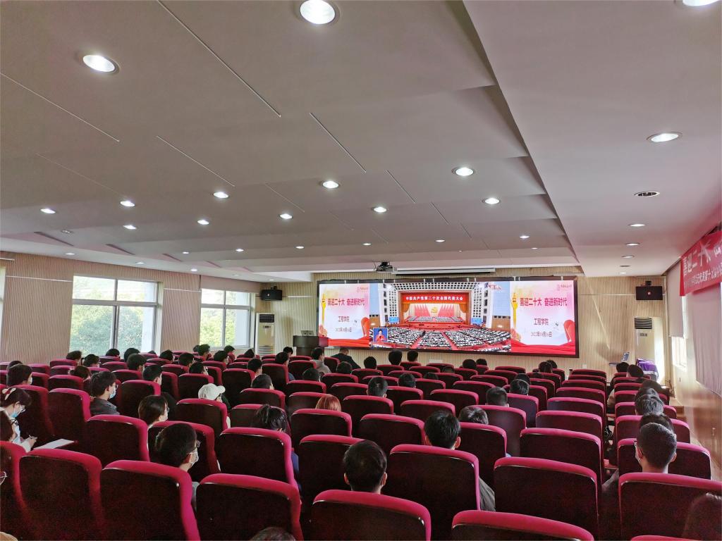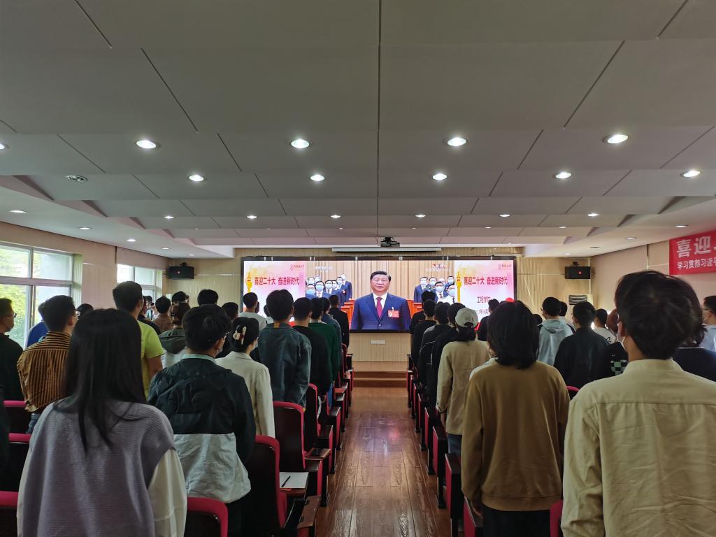 jdb电子中国官方网站党委书记李红丽,院长焦玉勇,副院长王亮清、倪晓阳、章广成,院党委副书记高晓东,各教工党支部书记、主任,院直机关全体工作人员及辅导员在工程楼315集中收看,各系(中心)教工党支部在各系会议室集中收看,学生党支部、团支部代表在工程楼418报告厅集中收看,窦斌副院长及学院代表等在东区教学综合楼A0113集中收看,其他师生在各自宿舍、工作室、会议室等通过电脑、手机收听收看。