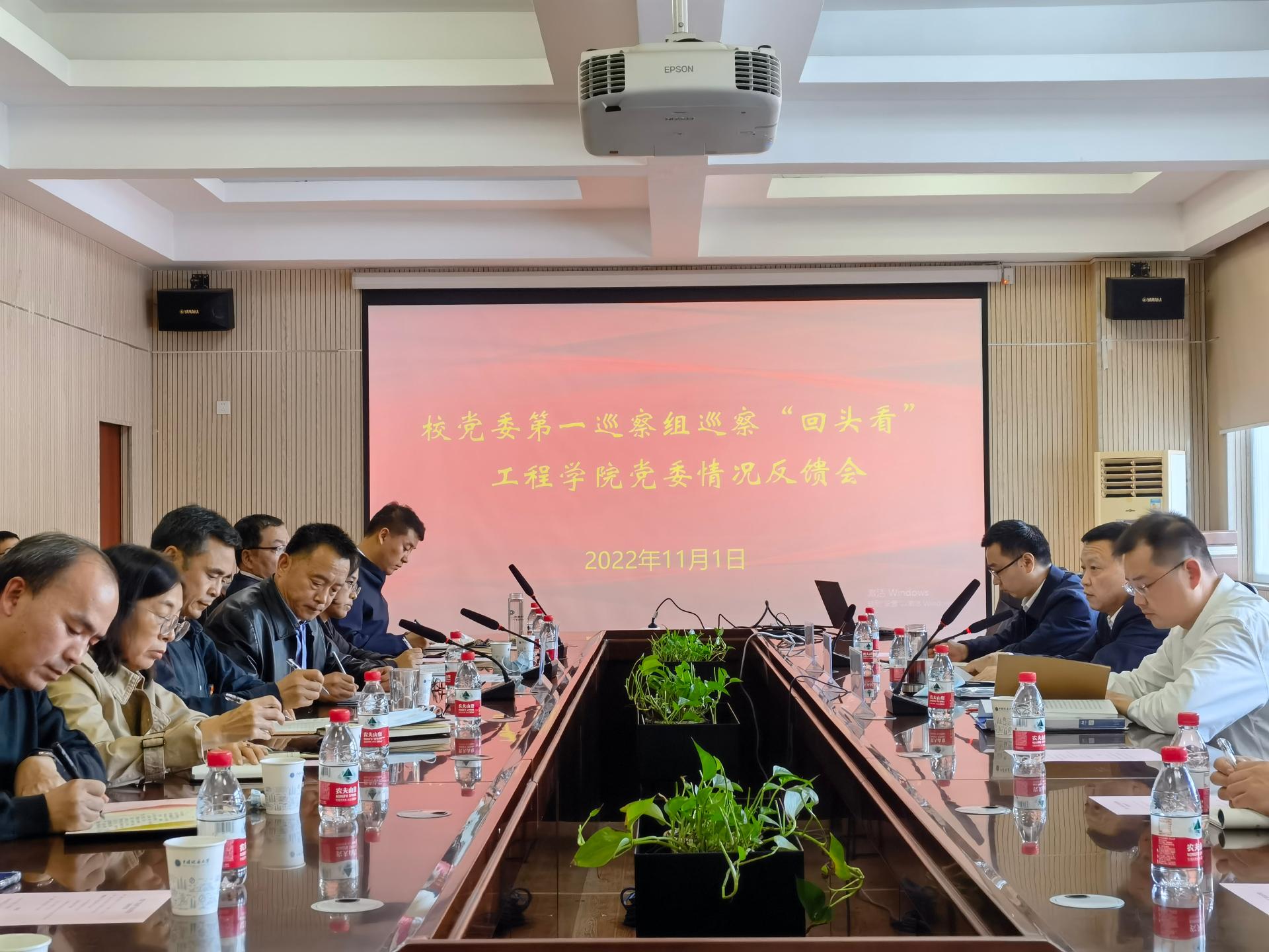 (通讯员 陈婵)11月1日,校党委第一巡察组向jdb电子中国官方网站党委反馈巡察“回头看”情况。巡察组副组长汪再奇代表巡察组向jdb电子中国官方网站党委书记李红丽,党委副书记、院长焦玉勇,领导班子和干部群众反馈了巡察“回头看”情况。校党委副书记王林清对jdb电子中国官方网站党委落实巡察整改任务提出了要求。李红丽在反馈大会上作表态发言。焦玉勇主持会议。