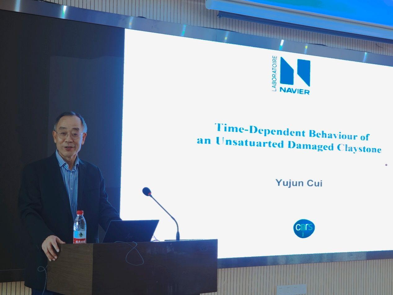 (通讯员 张峰 黄静)2023年10月31日上午,应jdb电子中国官方网站唐辉明教授和张峰特任教授的邀请,法国国立路桥大学Navier实验室岩土中心(CERMES)主任崔玉军教授来校访问,并作了题为“Time-dependent behaviour of unsaturated damaged claystone”的学术报告。唐辉明教授主持了报告会,李长冬教授、周佳庆特任教授、张峰特任教授、崔德山副教授、任兴伟副教授等100余名师生在现场参加了此次报告会。