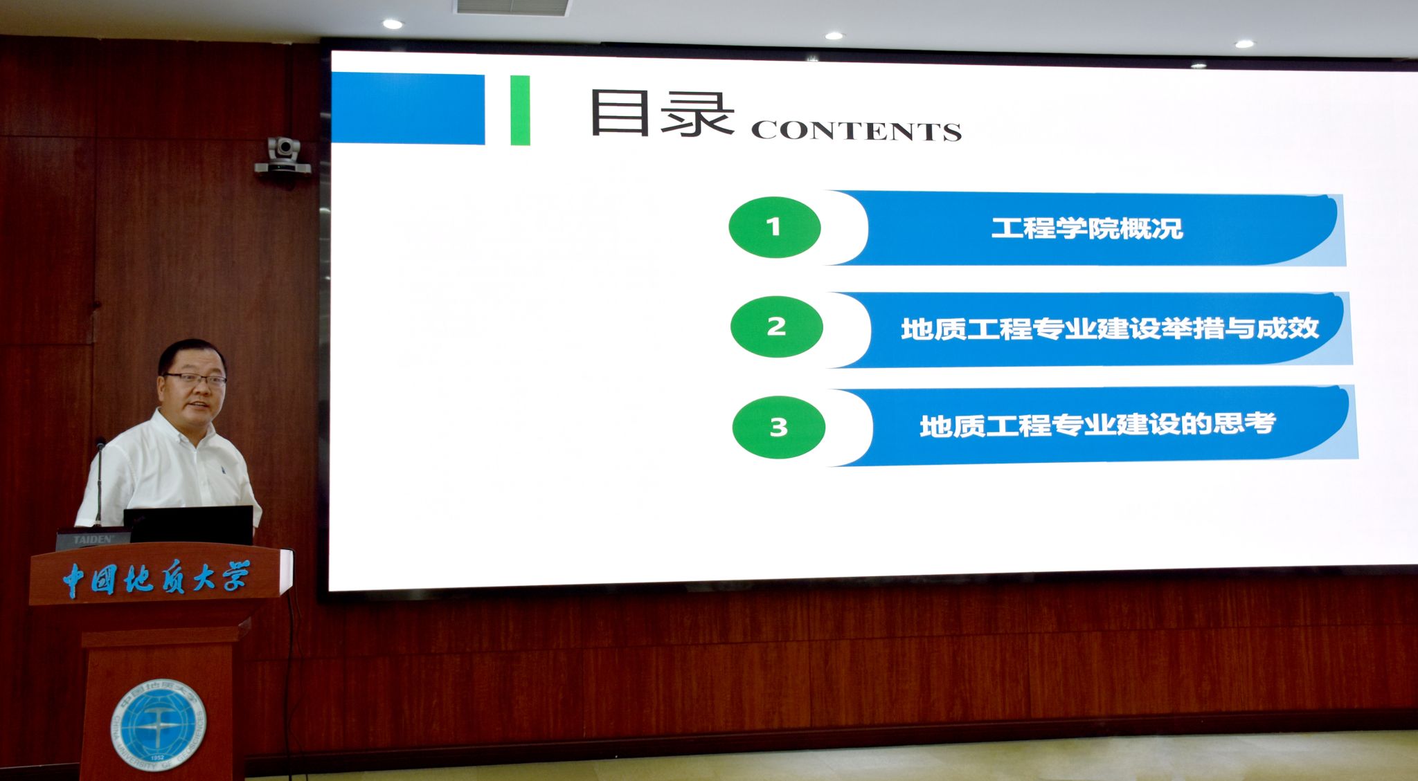 李建威对各位专家表示欢迎,对长期以来大家给予学校的关心和支持表示感谢。他首先介绍了学校的发展历史、办学特色和取得的成绩,充分肯定了我校地质工程专业近年来的建设成果。他指出,学校地质工程专业要紧紧围绕国家战略需求,进一步夯实专业基础,加强学科交叉融合,探索新时代地质工程人才培养新模式,用人工智能赋能高等教育,推动数字化转型与智能升级,以适应新一轮科技革命、产业变革和经济社会发展需要。他希望与会专家学者以本次会议为契机开展智慧碰撞和思想交流,凝聚共识,汇聚智慧,为我校地质工程专业的发展指明方向、提供动力。
