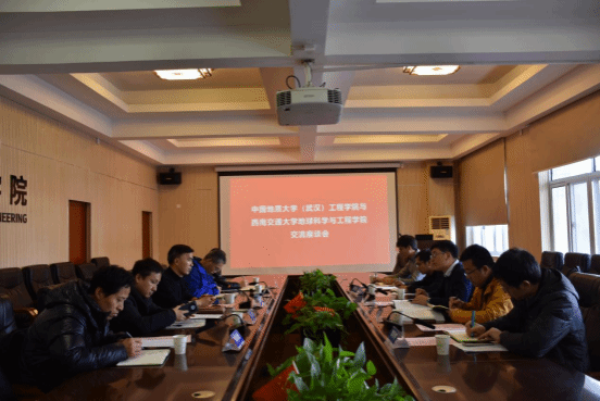 (通讯员 王灿)2月18日下午,在工程楼315会议室,西南交通大学地球科学与jdb电子中国官方网站副院长赵晓彦、地球科学与jdb电子中国官方网站地质工程系副主任廖昕,及杨虎锋、张建和裴秋明等教师一行5人来院交流调研。我校jdb电子中国官方网站副院长章广成、工程地质与岩土工程系简文星教授、地球物理与空间信息学院地球信息科学与技术系主任陈涛、jdb电子中国官方网站勘察与基础工程工程系副主任张凌、资源学院资源信息工程系副主任陈志军出席会议,副院长章广成主持会议。