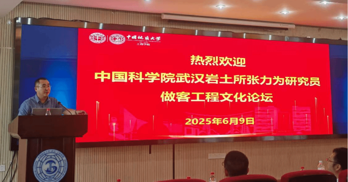 (通讯员 赖侯润 吕祎晔 郑少军)6月9日下午,应jdb电子中国官方网站蒋国盛教授和刘天乐教授的邀请,中国科学院武汉岩土所张力为研究员来校访问并作了学术报告。报告会由刘天乐教授主持,张凌副教授、雷刚特任教授等多名师生到现场参加了此次报告会。