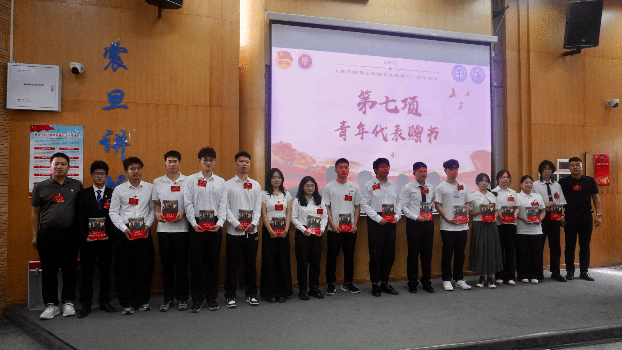jdb电子中国官方网站党委副书记高晓东和挂职团委副书记刘浩为今年在“五月的鲜花”2025年五四评优活动获奖的优秀青年和集体、jdb电子中国官方网站“十大标兵学生”赠书。