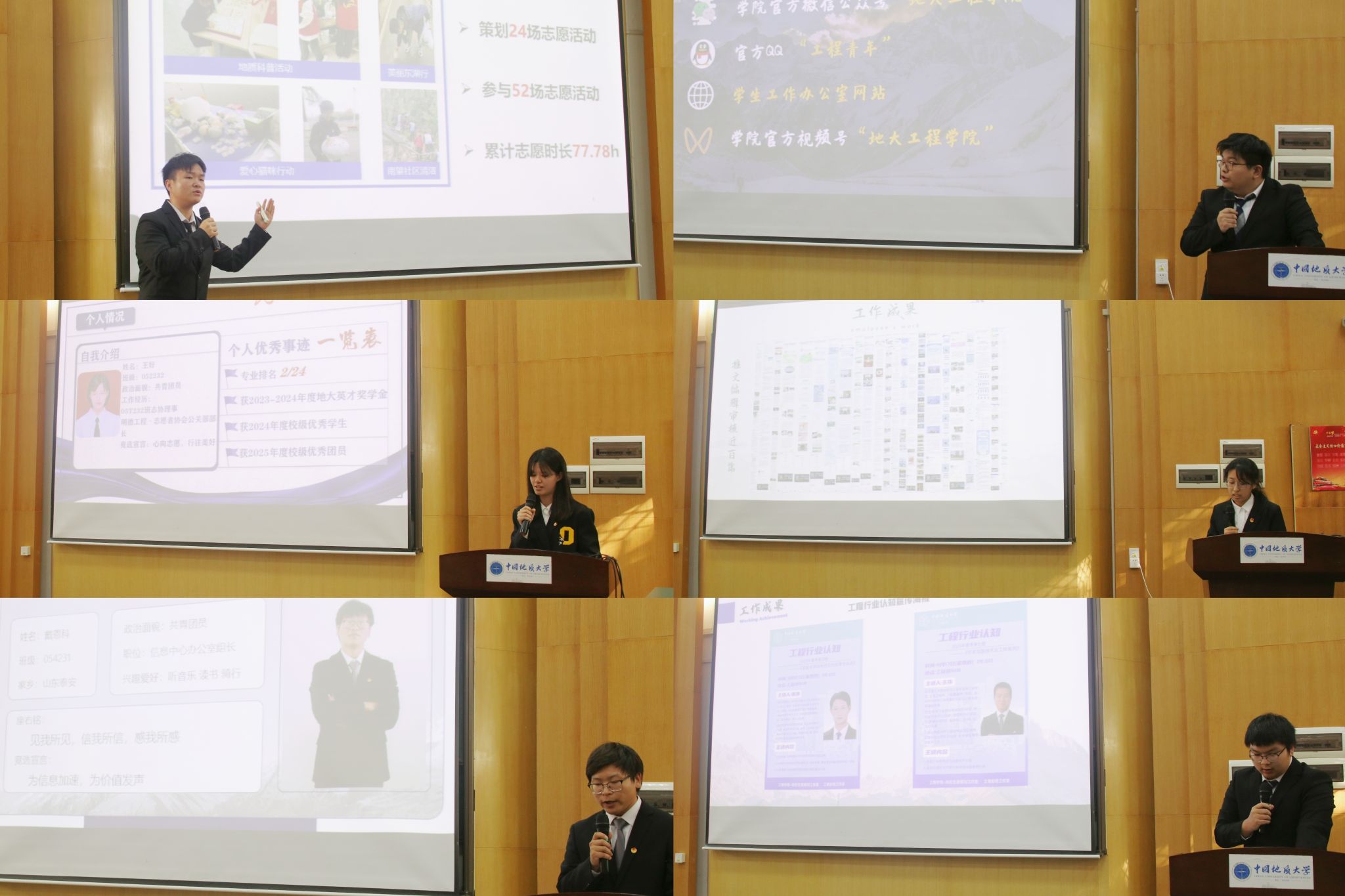 开幕会后,会议由学院团委主席团成员刘宜之主持。全体代表分别听取了第四届团委会作工作报告、第十届学委会工作报告,选举了第五届团委会、第十一届学委会委员,审议通过了共青团jdb电子中国官方网站(武汉)jdb电子中国官方网站委员会章程、jdb电子中国官方网站学生会章程,选举了2025 届团学组织主席团成员。