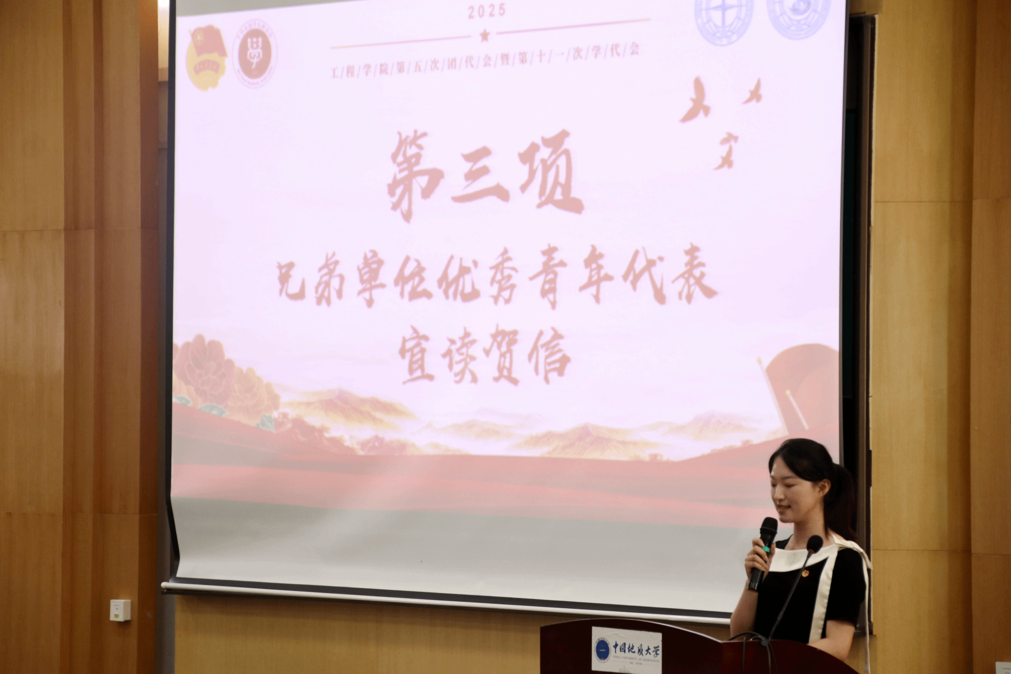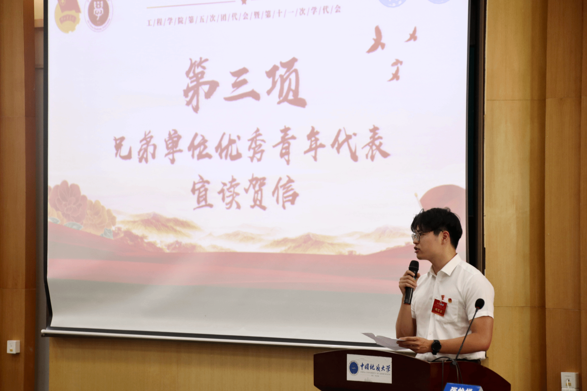 兄弟单位优秀青年代表华中农业大学工学院专职团干贾彦平和2024年全国“青马工程”班委、华中科技大学马克思主义学院硕士研究生张扬分别宣读贺信,贺信中饱含着兄弟院校对jdb电子中国官方网站的美好祝愿与深厚情谊,彰显了青年一代团结奋进、携手共进的精神风貌。本次大会还收到了华中科技大学土木与水利jdb电子中国官方网站、武汉理工大学土木工程与建筑学院等兄弟高校团委,以及中建三局基建投、武汉地铁集团和中交四航院研究院等企业团组织的贺信。