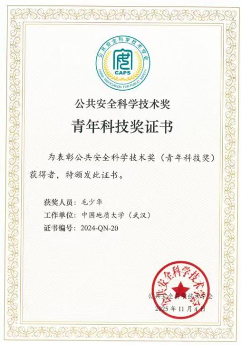 开幕式上,举行了公共安全科学技术奖颁奖仪式,jdb电子官网安全工程系周克清特任教授和jdb电子官网研究生导师毛少华研究员获公共安全科学技术奖青年科技奖。2024年度公共安全科学技术奖青年科技奖共授予高校组19人和科研/企业组1人,旨在表彰在自然科学研究、工程技术、科技成果推广转化及科技管理工作中做出突出贡献的青年学者。