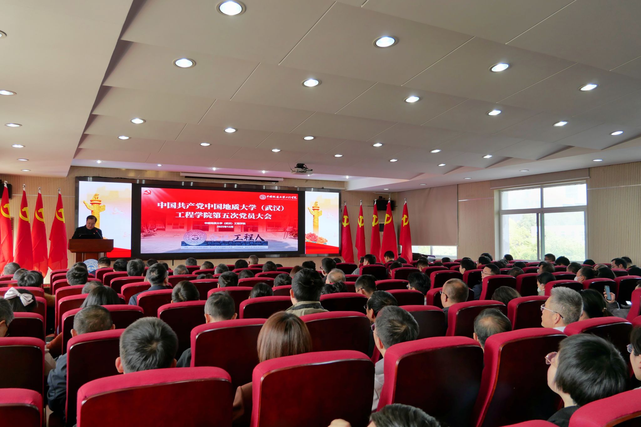 报告指出,学院党委在学校党委的坚强领导下,坚持以习近平新时代中国特色社会主义思想为指导,坚决贯彻落实学校党委决策部署,不忘初心、牢记使命,深入推进党建工作与业务工作深度融合,在全体党员和全院师生的共同努力下,圆满完成第四次党员大会确定的主要任务,学院各项事业取得新进展。一是抓党建强基础,党的领导全面加强。学院党委政治核心作用持续增强。2023年学院党委获批学校党建工作“标杆分党委”培育创建单位。师生政治理论武装持续深入。学院各党支部严格落实政治理论学习要求,通过校企、师生、党团联学联建、实践研学等活动丰富学习形式,增强学习效果。师生党支部建设成效显著。3个师生党支部入选学校党建工作“样板支部”培育创建单位,19个师生党支部获评学校先进基层党组织。师生党员发展工作卓有成效。严格党员发展程序,六年发展师生党员1071名、转正师生党员939名。党风廉政建设常抓不懈。落实全面从严治党“四责协同”相关要求,构建“一级抓一级,层层抓落实”的党风廉政建设责任体系。统战、群团工作不断加强。鼓励党外知识分子发挥优势建言咨政、服务社会,共绘事业发展同心圆。二是抓重点强落实,学院综合实力持续增强。人才培养质量稳步提高。深化“三全育人”“五育并举”,深化教育教学改革,持续提升本科生和研究生教育教学质量。师资队伍建设成效明显。六年来,学院新增国家杰出青年基金获得者等国家级人才3人、国家级青年人才项目获得者10人、湖北省人才项目获得者10人。学科平台和实验室建设持续推进。地质工程成功入选第二轮“双一流”建设学科名单,完成“十四五”实验室建设发展规划,建设四横三纵高标准实验室建设体系。科学研究和社会服务再上新台阶。2019年以来学院到账科研经费5.3亿元,其中纵向经费2.2亿元,横向经费3.1亿元。与行业单位签订产学研合作协议65家。国际合作与影响力持续提升。主办、承办各类国际学术会议15场,邀请163人次国(境)外专家来学院线上线下讲学交流。学院文化建设初见成效。学院党委进行了全面总结和系统凝练,形成了独具“工程特色”的学院标识文化体系。