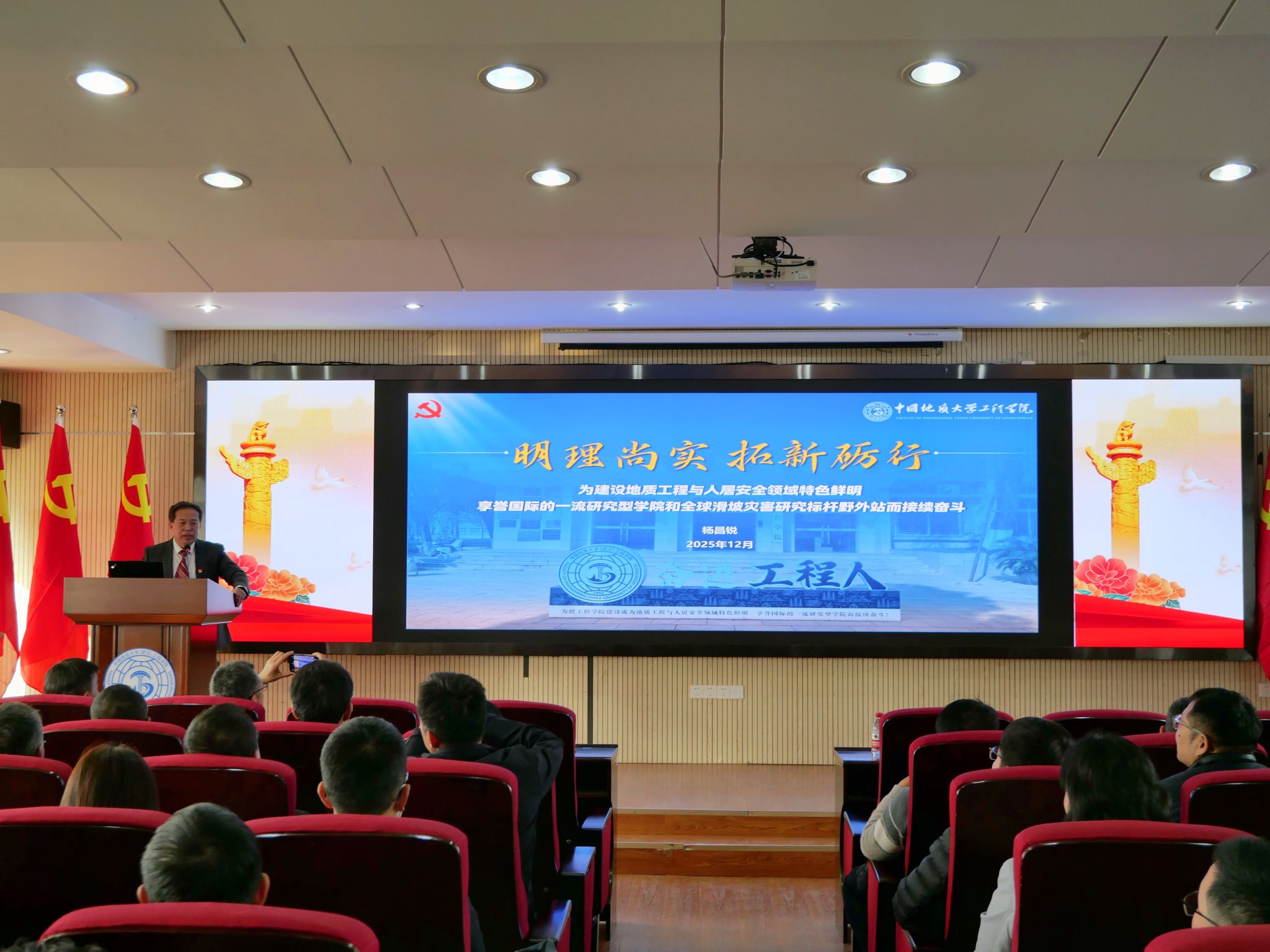 2025年12月11日,学院召开中共jdb电子中国官方网站(武汉)jdb电子中国官方网站委员会第五次党员大会,党委书记杨昌锐同志代表第四届党委会作题为《明理尚实 拓新砺行 为建设地质工程与人居安全领域特色鲜明、享誉国际的一流研究型学院和全球滑坡灾害研究标杆野外站而接续奋斗》工作报告
