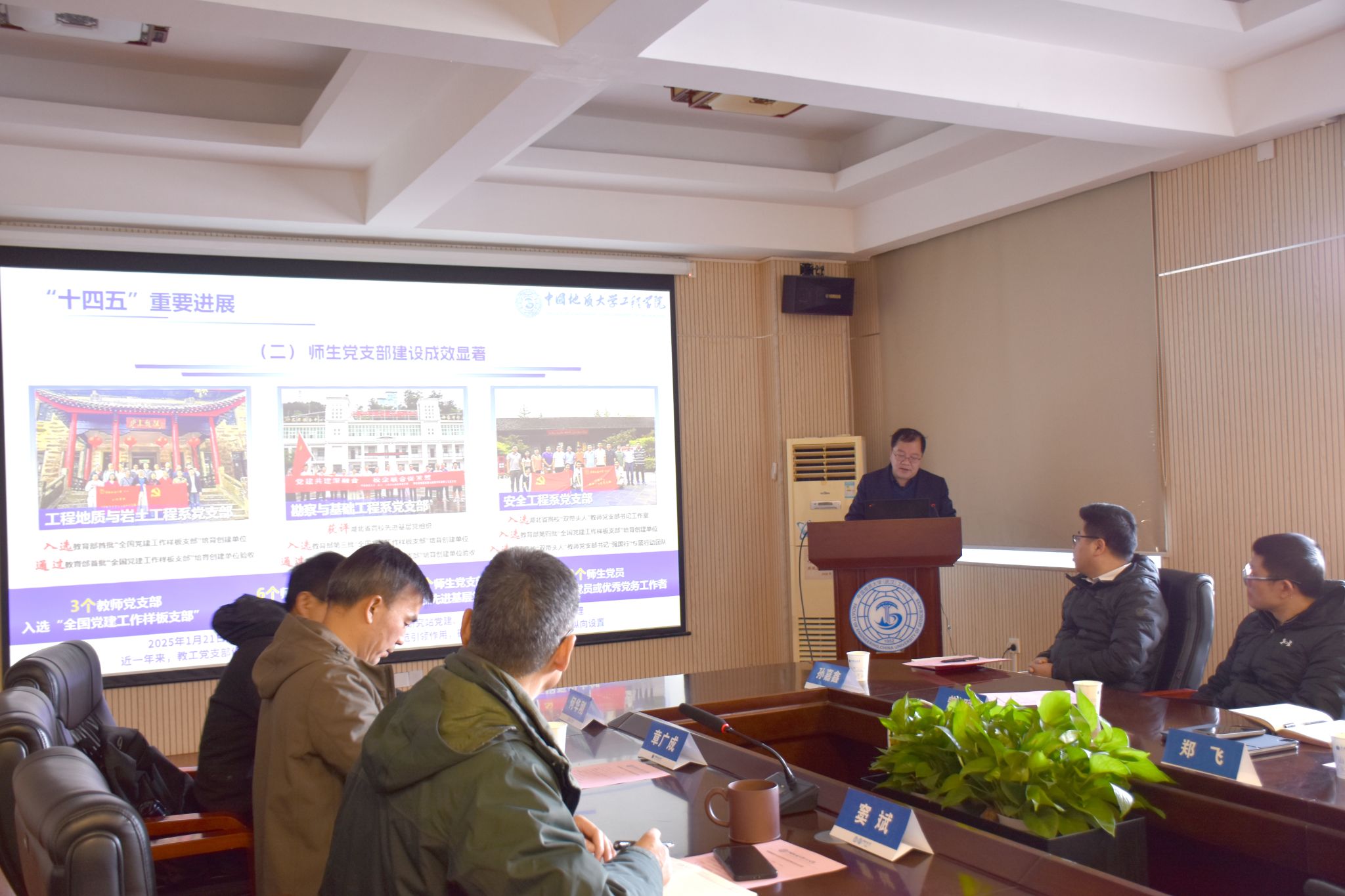 李建威校长对学院“十四五”期间取得的显著成效给予高度肯定。他指出,jdb电子中国官方网站作为学校“双一流”建设的核心力量,在服务国家重大战略需求、培养高素质工程技术人才等方面发挥了重要作用。针对学院“十五五”规划编制与未来发展,李建威校长提出明确指导意见:一是锚定国家“三深一极”战略需求,精准布局深地、深海、深空、极地等新兴领域,打破学科边界与学院壁垒,推动学科交叉融合与拓展升级;二是聚焦高端平台建设,加大地质工程领域高水平实验室筹建力度,构建“重大项目-重大平台-重大成果-重大奖励”联动机制;三是强化人才引育并举,积极引进海内外顶尖学者、企业领军专家与大国工匠,打造结构合理、富有活力的人才梯队;四是坚守立德树人根本,狠抓学风建设,增强学生专业认同感,夯实基础知识与地质特色功底,培养担当民族复兴大任的时代新人;五是加强院系两级班子建设,突出政治引领、提升履职能力、强化团结协作、深化服务师生,以高质量治理赋能学院发展,充分激发师生干事创业的积极性与创造性。