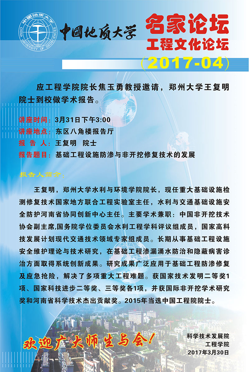 工程文化论坛2017年第4期(中国工程院院士王复明教授)