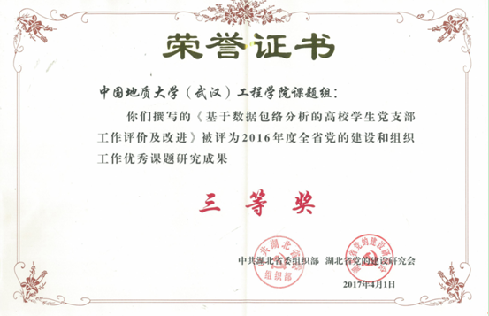 (通讯员:文新)近日,中共湖北省委组织部、省党建研究会公布了《关于表彰2016年度全省党的建设和组织工作优秀课题研究成果的通知》(鄂组通〔2017〕10号),jdb电子官网由江广长、李少杰、丁继国完成的《基于数据包络分析的高校学生党支部工作评价及改进》课题获评三等奖。