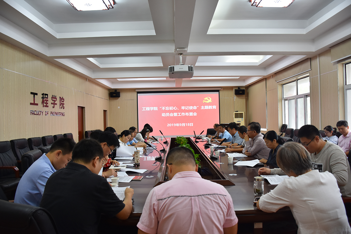 9月18日,jdb电子中国官方网站“不忘初心、牢记使命”主题教育动员会暨工作布置会在工程楼315会议室召开。学院党委书记、主题教育领导小组组长陈飞作动员讲话,学校主题教育指导组组长、教务处副处长张建和,学院领导班子成员、党委委员、各系(室、中心)支部书记、主任、学生辅导员、三级单位党员代表参会。