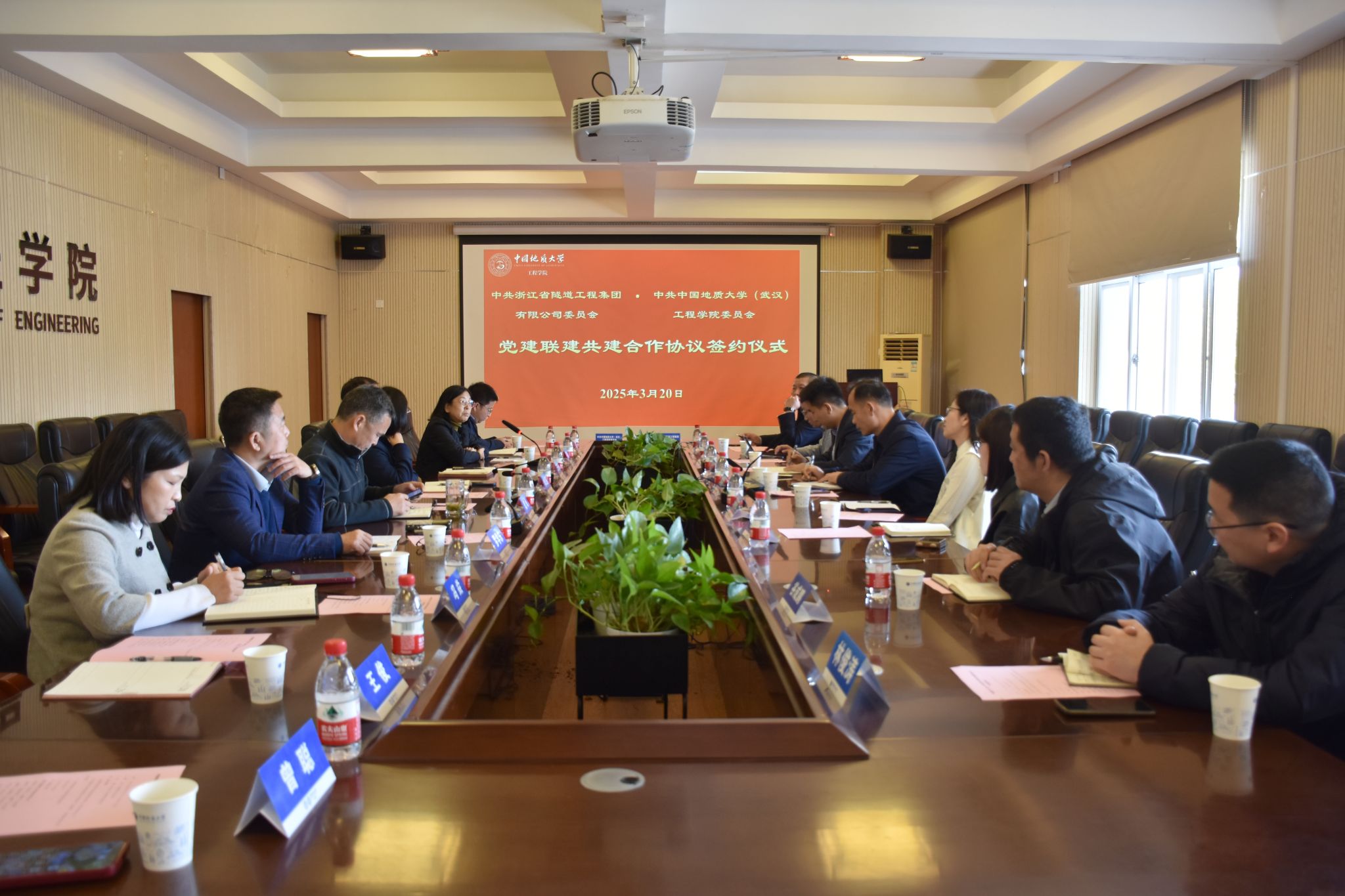 (通讯员 黄燕)为深入贯彻落实党的二十大和党的二十届三中全会精神,贯彻落实全国两会精神,进一步推动党建与业务深度融合,加强校企合作,实现资源共享、优势互补,2025年3月20日,jdb电子中国官方网站与浙江省隧道工程集团有限公司在jdb电子中国官方网站会议室就党建联建、人才培养、科研创新等方面开展座谈交流并签署党建联建共建合作协议。浙江省隧道工程集团有限公司党委书记、董事长、总经理李桂来,党委副书记、董事、工会主席谢常才,党委委员、总会计师张赛花,jdb电子中国官方网站党委书记李红丽,党委副书记、院长王亮清,党委委员、副院长窦斌,副院长倪晓阳,学术副院长吴文兵,双方相关人员参加会议。李红丽主持会议。